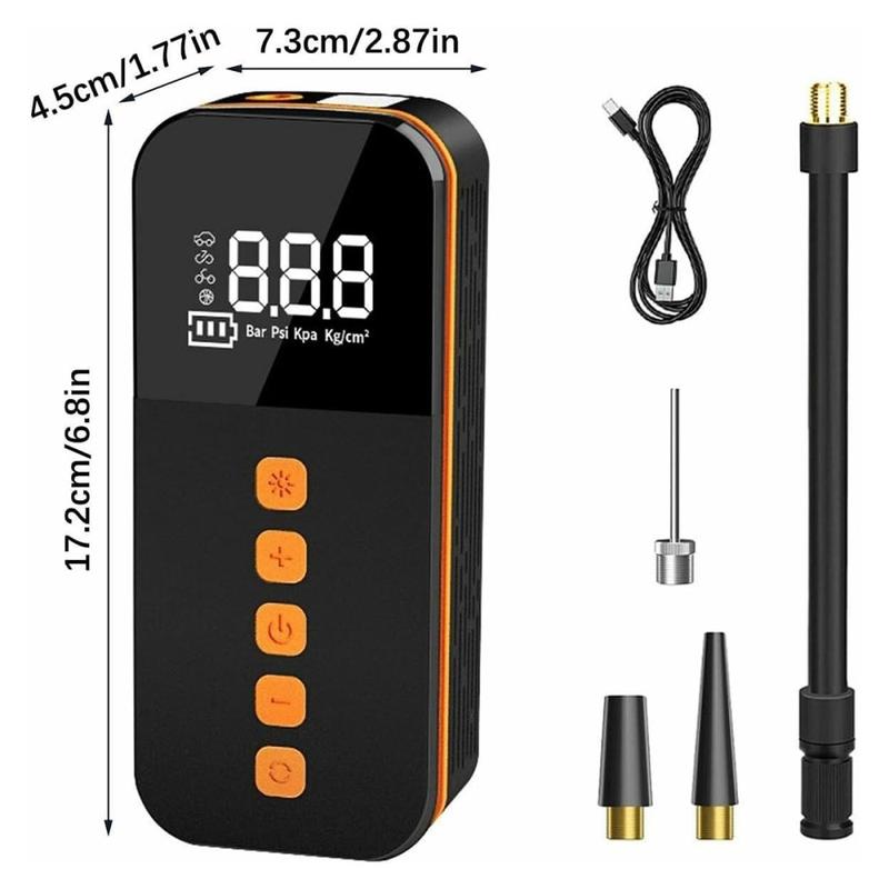 Blijf voorbereid op weg met deze Portable Car Tire Inflator, een compacte en krachtige draadloze luchtpomp ontworpen voor het snel oppompen van banden en veelzijdig gebruik. Met een slim digitaal display, voorgeprogrammeerde standen en een hogedrukcapaciteit tot 150 PSI kun je gemakkelijk auto-, motor- en fietsbanden oppompen, of zelfs sportballen. Het draagbare cup-formaat ontwerp, de oplaadbare batterij en het ingebouwde LED-lampje maken het een essentieel hulpmiddel voor chauffeurs en outdoor enthousiastelingen.