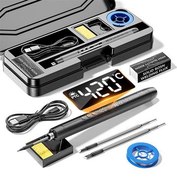 Deze compacte soldeerset combineert draagbaarheid, gemak en veelzijdigheid in één apparaat. Dankzij het oplaadbare ontwerp is er geen constante stroomaansluiting nodig, terwijl de digitale temperatuurregeling en verwisselbare punten u in staat stellen een breed scala aan soldeertaken uit te voeren. Het is vooral handig voor hobbyisten en gebruikers die een eenvoudige soldeeroplossing willen voor dagelijkse reparatiewerkzaamheden.