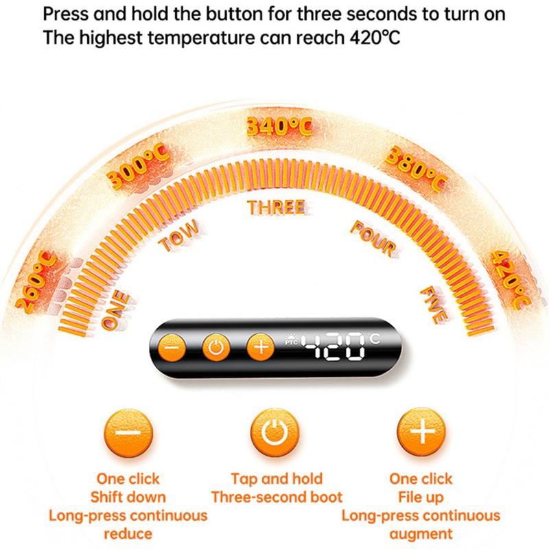 Een digitaal display geeft realtime temperatuurmetingen weer, terwijl u met vijf instelbare warmtestanden de temperatuur kunt afstemmen op verschillende materialen en taken. Het PTC-keramische verwarmingselement zorgt ervoor dat de soldeerbout snel opwarmt voor een snellere opstart, en de geïntegreerde LED-werklamp verbetert het zicht bij het werken met kleine onderdelen.
