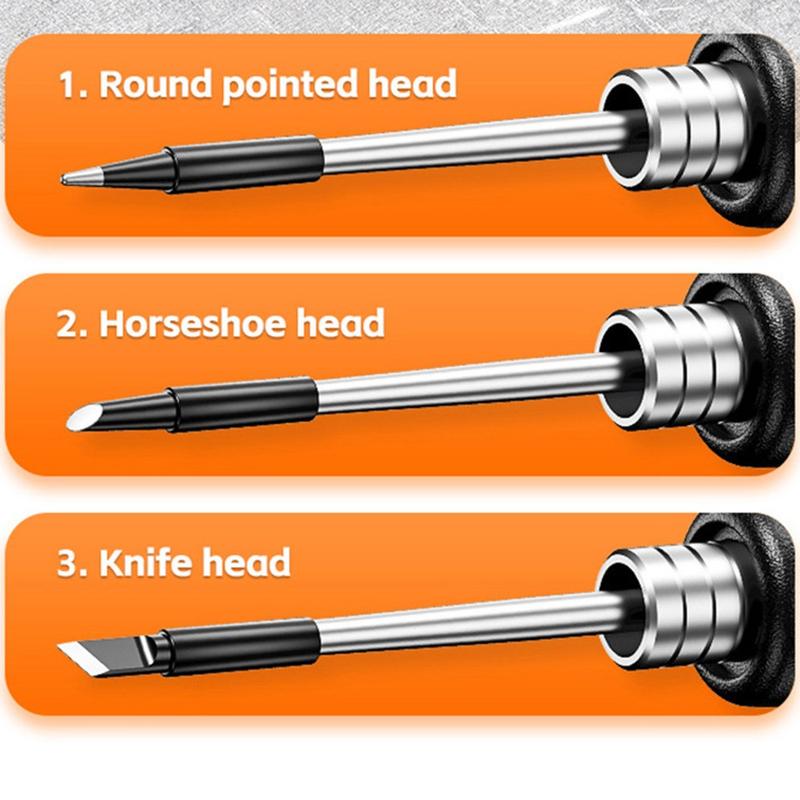 - Inclusief drie verwisselbare punten: rond, puntig, hoefijzer en mes
