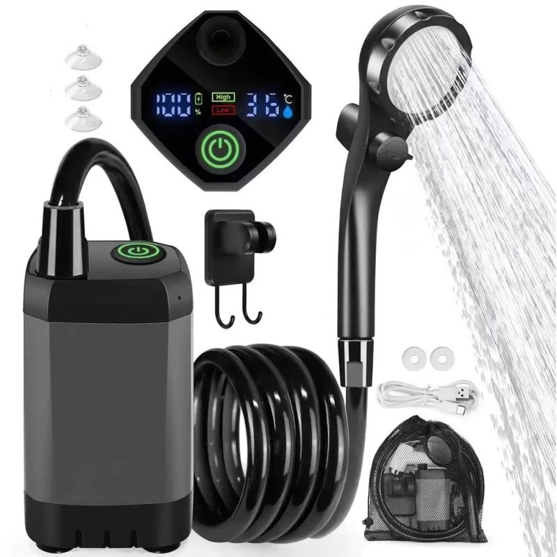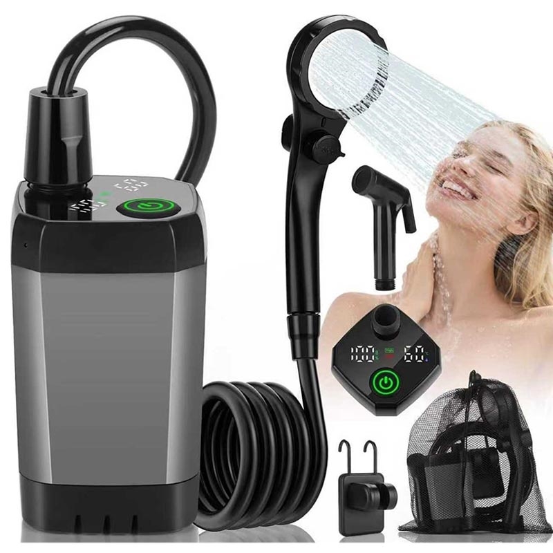 Deze draagbare elektrische douchepomp is ontworpen om buiten douchen gemakkelijker, comfortabeler en flexibeler te maken, waar u ook bent. Met een ingebouwde batterij van 6000mAh, IPX7-waterdichtheid en een slim digitaal display is het een praktische keuze voor kamperen, reizen met de camper, stranduitstapjes, wandelen, het wassen van huisdieren en schoonmaakwerkzaamheden in de buitenlucht. Dankzij het draadloze ontwerp en de complete accessoirekit kunt u genieten van een handigere doucheopstelling zonder afhankelijk te zijn van een vaste wateraansluiting of stopcontact.