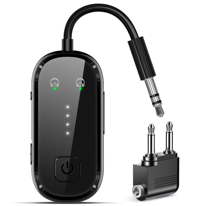 Dual Link 2-in-1 Bluetooth-audioadapter voor in het vliegtuig, de auto en thuis - Zwart