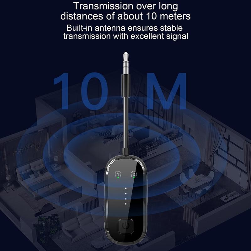 Dankzij Bluetooth 5.4-technologie biedt het apparaat een snellere respons, stabiele connectiviteit en efficiënte draadloze prestaties. In de zendmodus kan het audio van bedrade bronnen naar Bluetooth-hoofdtelefoons of -luidsprekers verzenden. In de ontvangstmodus kan het draadloze audio van uw smartphone, tablet of ander Bluetooth-compatibel apparaat ontvangen en dit via de 3,5 mm-aansluiting naar bedrade audioapparatuur sturen. Dual-link-ondersteuning biedt nog meer gemak door verbinding met twee Bluetooth-apparaten tegelijk mogelijk te maken, waardoor samen luisteren of schakelen tussen meerdere apparaten eenvoudiger wordt.