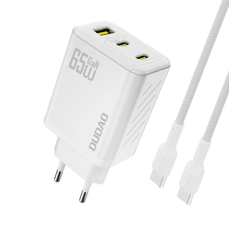 Dudao A29C 65W GaN Wandoplader - 3-poorts snelle oplader (2× USB-C + USB-A) met 1 m USB-C naar USB-C kabel, PD & QC ondersteuning