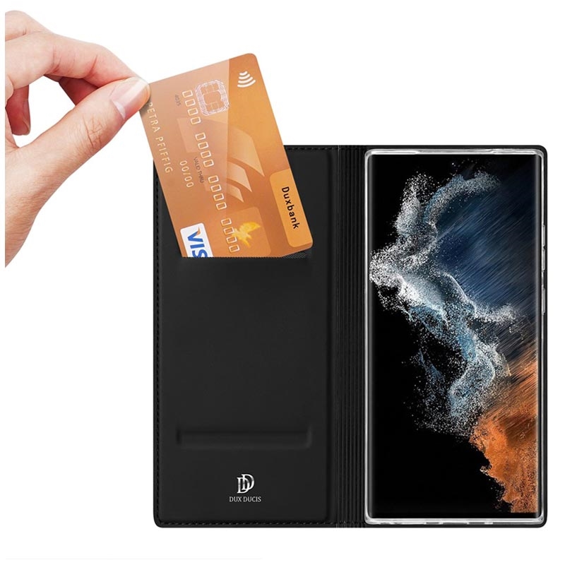 Met één kaartsleuf voor het opbergen van uw ID of creditcard. De Dux Ducis Skin Pro flip case voor Samsung Galaxy S23 Ultra 5G heeft ook een standaard voor handsfree media bekijken.