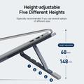 Vijf verschillende hoogtes instelbaar, vooral aan te raden als je meerdere laptops van verschillende formaten gebruikt
