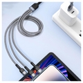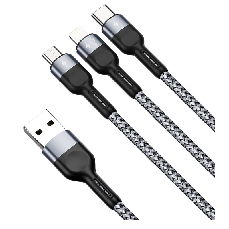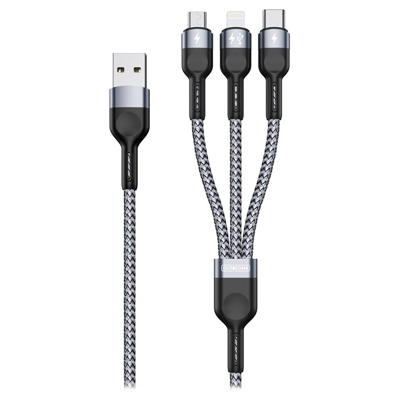 Duzzona A3 microUSB, Lightning, USB-C Kabel - micro USB, Lightning, USB Type-C, 2.4A, 1.2m, gevlochten
