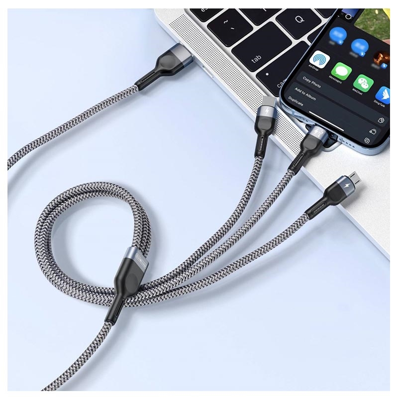 Laad tot drie apparaten tegelijk op met de A3 serie 3-in-1 oplaadkabel van Duzzona.
