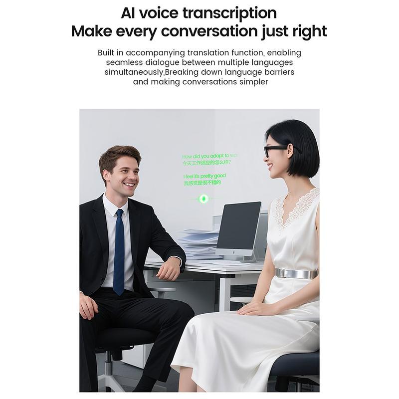 De E02 slimme AI-bril combineert geavanceerde technologie met alledaags gebruiksgemak en biedt fotografie, real-time vertaling, AI-objectherkenning en audiofuncties in één draagbaar apparaat. Uitgerust met een 8MP Sony dual-lens camera en AI-gestuurde anti-shake stabilisatie, legt deze bril 1080P HD video en foto's vast met uitzonderlijke helderheid. Dankzij de geïntegreerde microfoons en luidsprekers kun je handsfree bellen en muziek afspelen, waardoor je geen aparte oortelefoon nodig hebt. Met intuïtieve aanraakbediening, lange levensduur van de batterij en een ergonomisch lichtgewicht ontwerp is de E02 perfect voor reizigers, ontwerpers en professionals die prestaties en stijl in één willen.