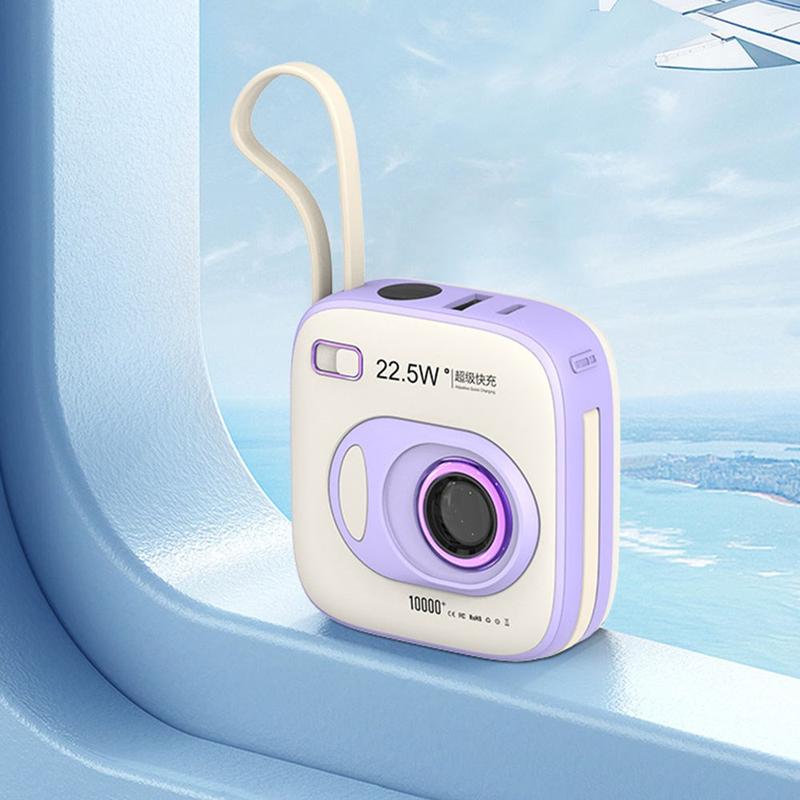 E52 10000mAh Mini Cabled Power Bank Camera-vorm draagbare telefoon oplader externe batterij - paars