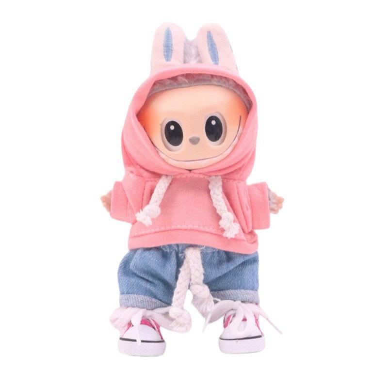 Effen Hoodie voor 17cm Labubu Minifiguur - Zachte katoenmix Hooded Top, Makkelijk Jurk Ontwerp