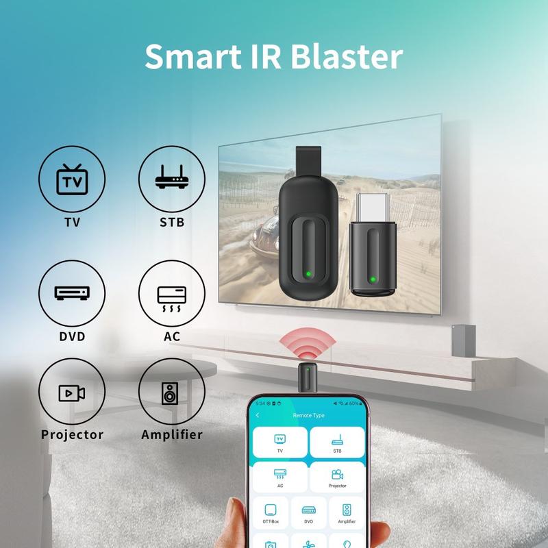 Geen batterijen, geen opladen en geen app-specifieke beperkingen - sluit de adapter gewoon aan op de Lightning/Type-C-poort van je apparaat en geniet van onmiddellijke controle over IR-gebaseerde huiselektronica.