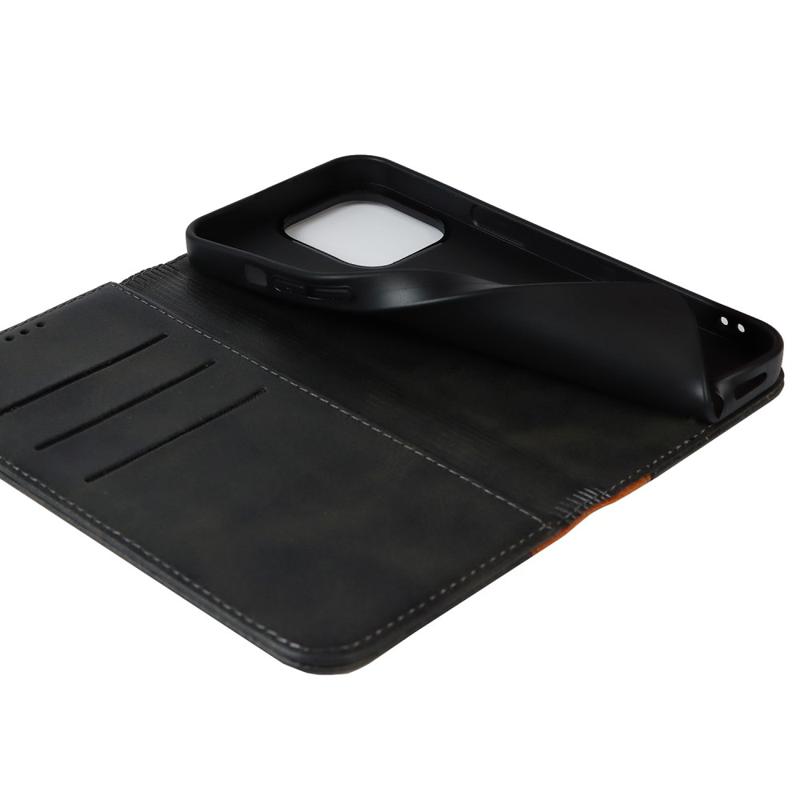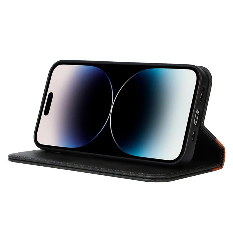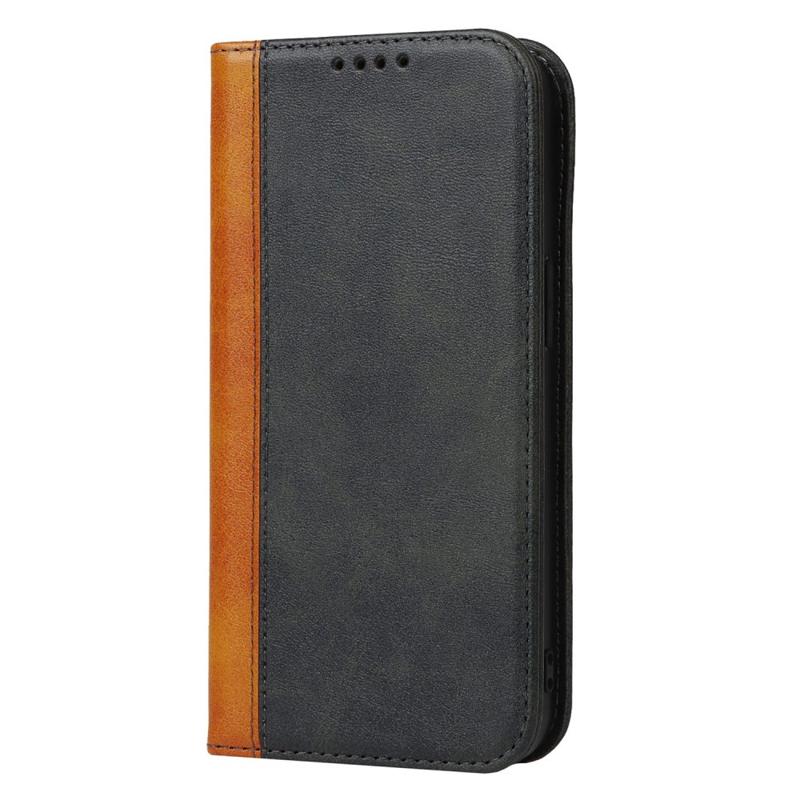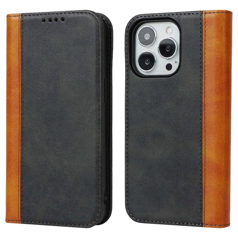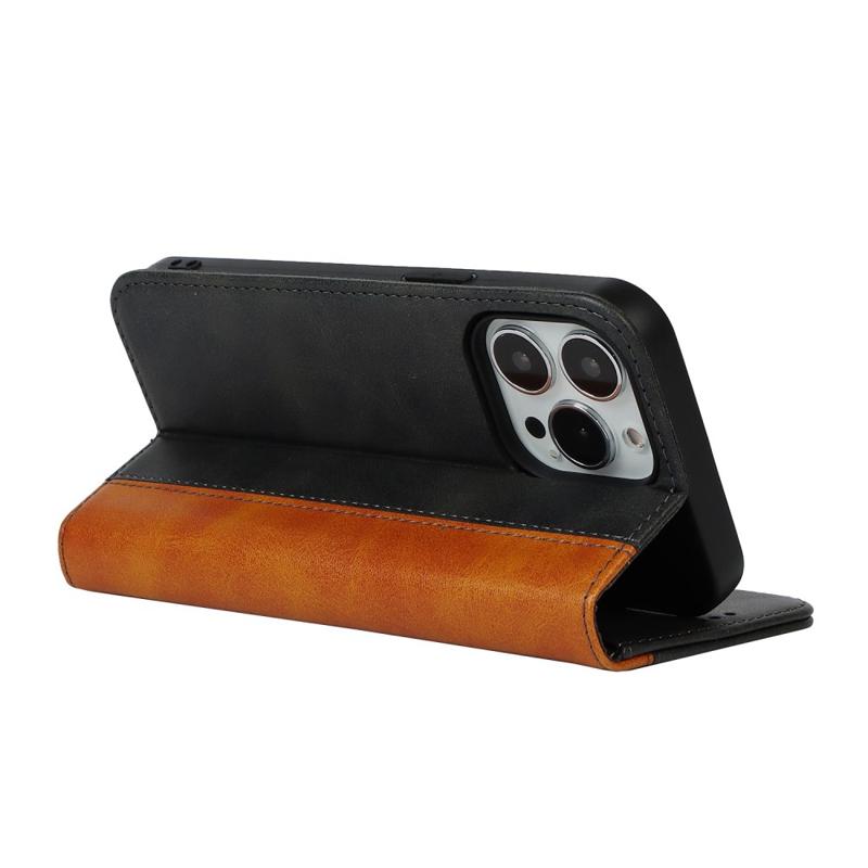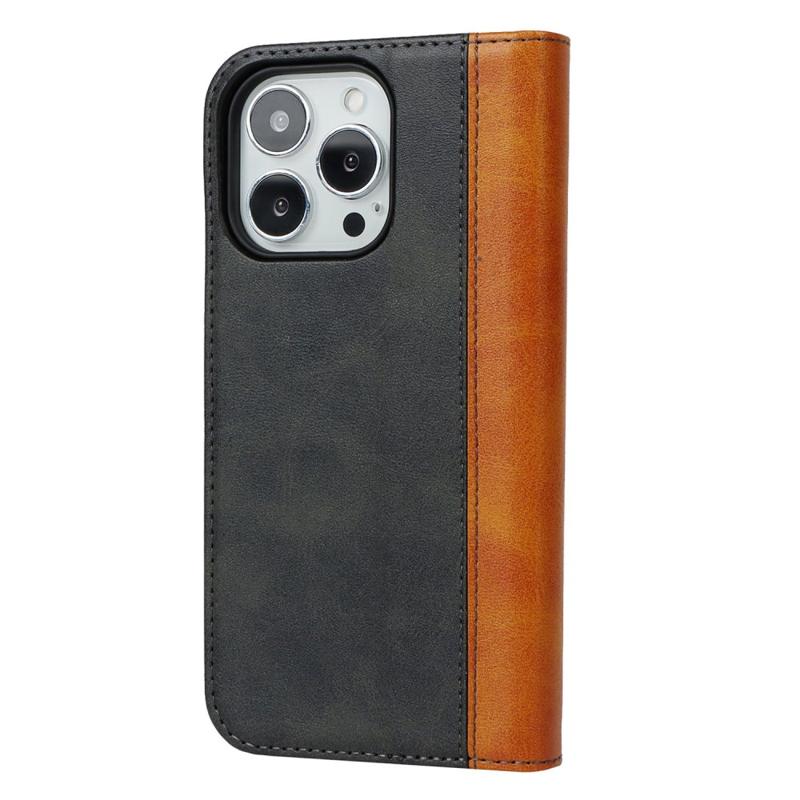 Voor iPhone 14 Pro Max Kalf Textuur PU Leer Schokbestendig Portemonnee Case Bi-color Splicing Magnetische Auto-geabsorbeerd Opvouwbare Stand Cover