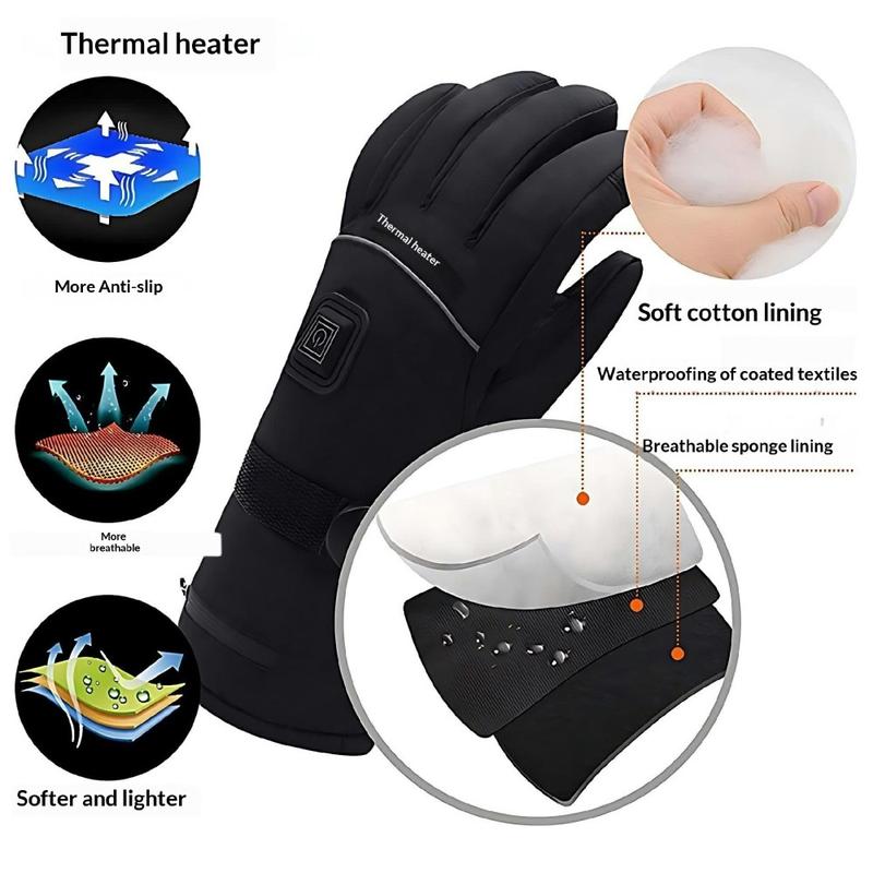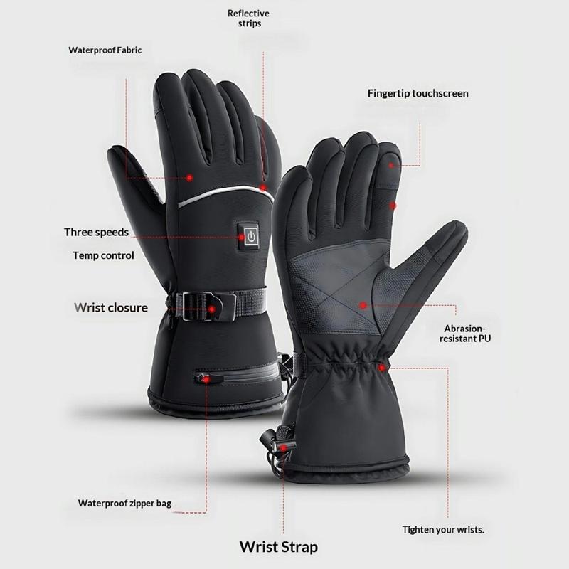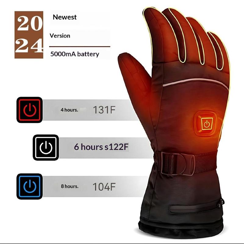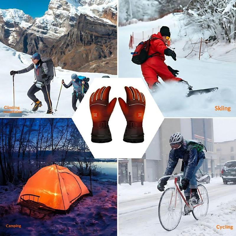 • Elektrisch verwarmde handschoenen met 2 accu’s van 5000mAh, touchscreen, waterdicht ontwerp en 3 warmtestanden voor gebruik in de winter buitenshuis