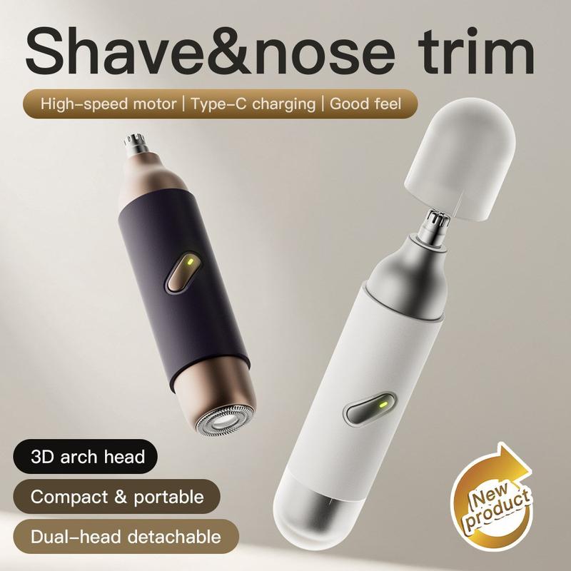 Elektrische haar- en neustrimmer voor mannen - Draagbaar mini-scheerapparaat met Type-C-oplaadfunctie en twee afwasbare opzetkoppen