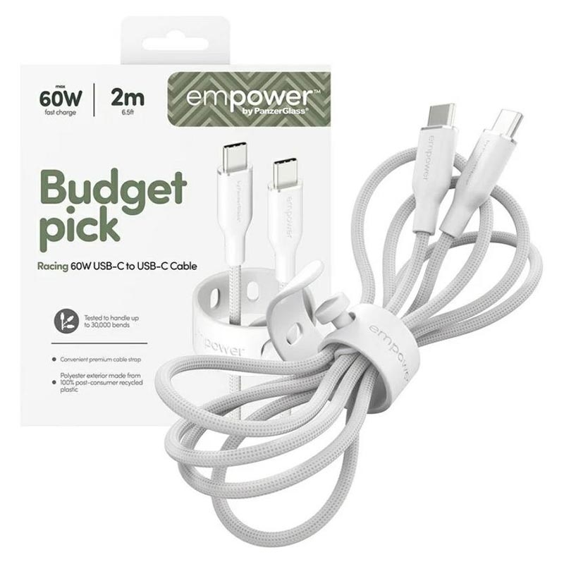 • Empower by PanzerGlass Racing USB-C naar USB-C-kabel - 60W snelladen, ultrazacht en duurzaam