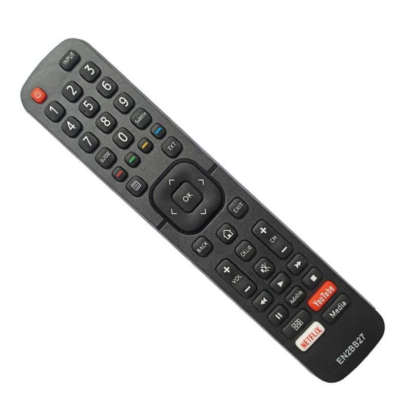 Upgrade of vervang je ontbrekende afstandsbediening met de EN2BB27 afstandsbediening, speciaal gemaakt voor Hisense TV's. Het ergonomische ontwerp en de intuïtieve knoppenindeling bieden comfortabele bediening voor al je favoriete functies - aan/uit, volume aanpassen en kanalen schakelen - zodat je naadloos in je entertainment kunt duiken.