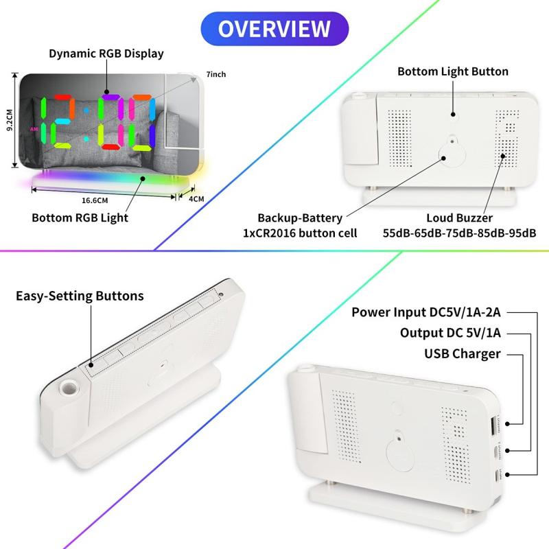 - Bedklok: Gebruik de RGB-verlichting en projectiefunctie om 's nachts moeiteloos de tijd te controleren.