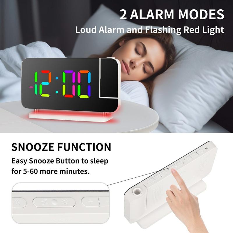 - Projectie-functie: Toont de tijd op het plafond met instelbare helderheid en 360° rotatie voor gemakkelijk bekijken.