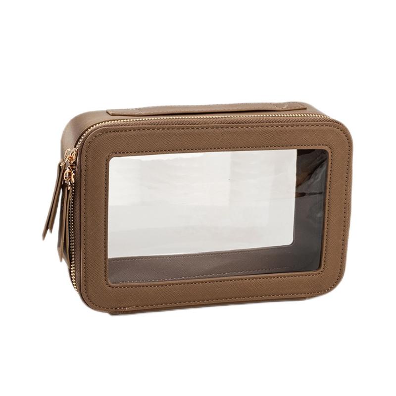 Enkellaags Transparante Make-uptas Waterdicht PU Leren Cosmetische Tas - Khaki