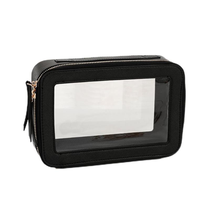 • Enkellaags Transparante Make-uptas Waterdicht PU Leren Cosmetische Tas - Zwart