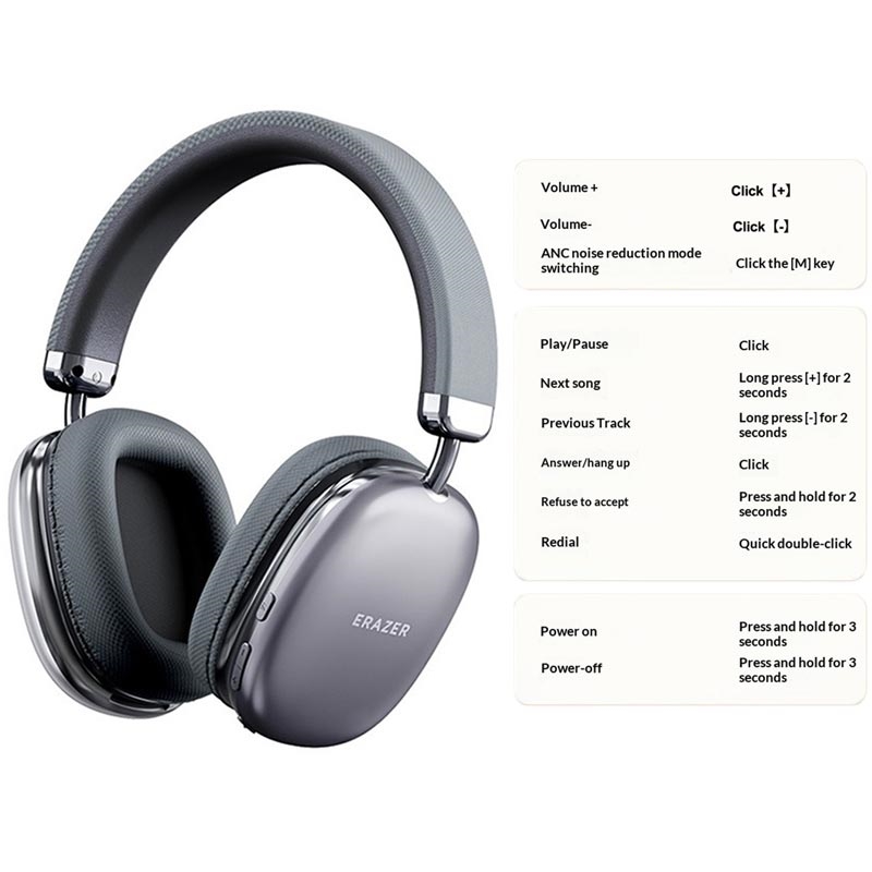 Geniet van een nog meeslepender luisterervaring in het dagelijks leven met de ERAZER EM-Z03 Bluetooth 5.4-hoofdtelefoon. Deze hoofdtelefoon is ontworpen voor muziek, telefoongesprekken en entertainment onderweg en combineert 40 mm-drivers met een composietmembraan met actieve ruisonderdrukking voor een helderder, scherper geluid in verschillende omgevingen. Het comfortabele over-ear-ontwerp, de verbinding met lage latentie en een batterijduur tot 30 uur maken deze hoofdtelefoon tot een praktische keuze voor woon-werkverkeer, werk, reizen en dagelijkse ontspanning.