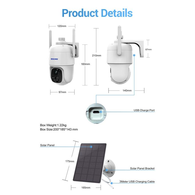 ESCAM G24 H.265 3MP Full HD AI Identify Camera met Zonnepaneel PIR Alarm WiFi Camera Ingebouwde Batterij