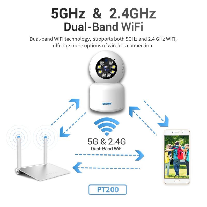 Escam PT300 Dual-Band Wi-Fi Pan Tilt Beveiligingscamera - 1080P ogen en oren voor elke kamer