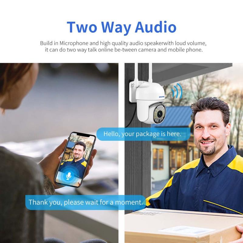 - Audio in twee richtingen - Ingebouwde microfoon en luidspreker maken communicatie in realtime mogelijk voor een betere beveiliging.