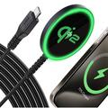 - De oplader heeft geen indicatielampje. Het groene backlight op de foto is slechts een demonstratie van de QI2-technologie.