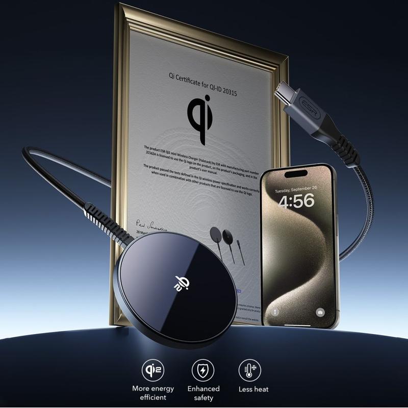 ESR HaloLock Qi2 Mini is een moderne oplader uitgerust met geavanceerde functies die ervoor zorgen dat je je telefoon gemakkelijk en veilig kunt opladen. Sterke magneten zorgen voor een stevige verbinding met je telefoon, wat leidt tot sneller en betrouwbaarder opladen, zelfs tijdens het gebruik van het apparaat. HaloLock Qi2 Mini laadt je telefoon sneller op dan andere MagSafe laders dankzij het geavanceerde warmteafvoerontwerp om maximale laadsnelheden te behouden.