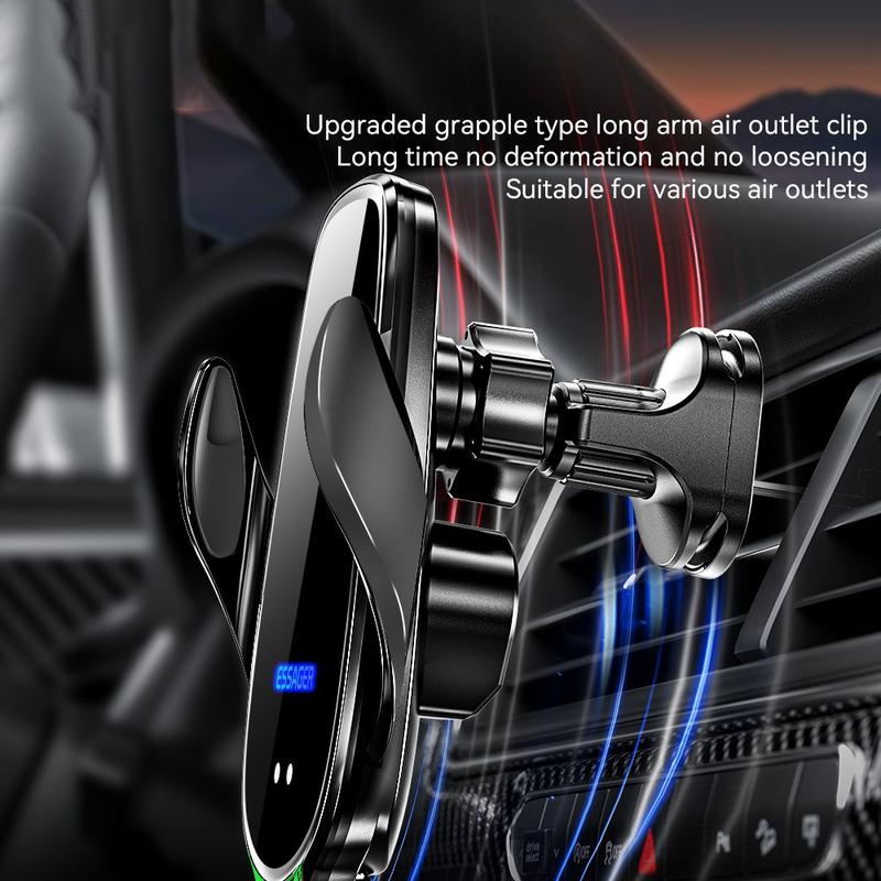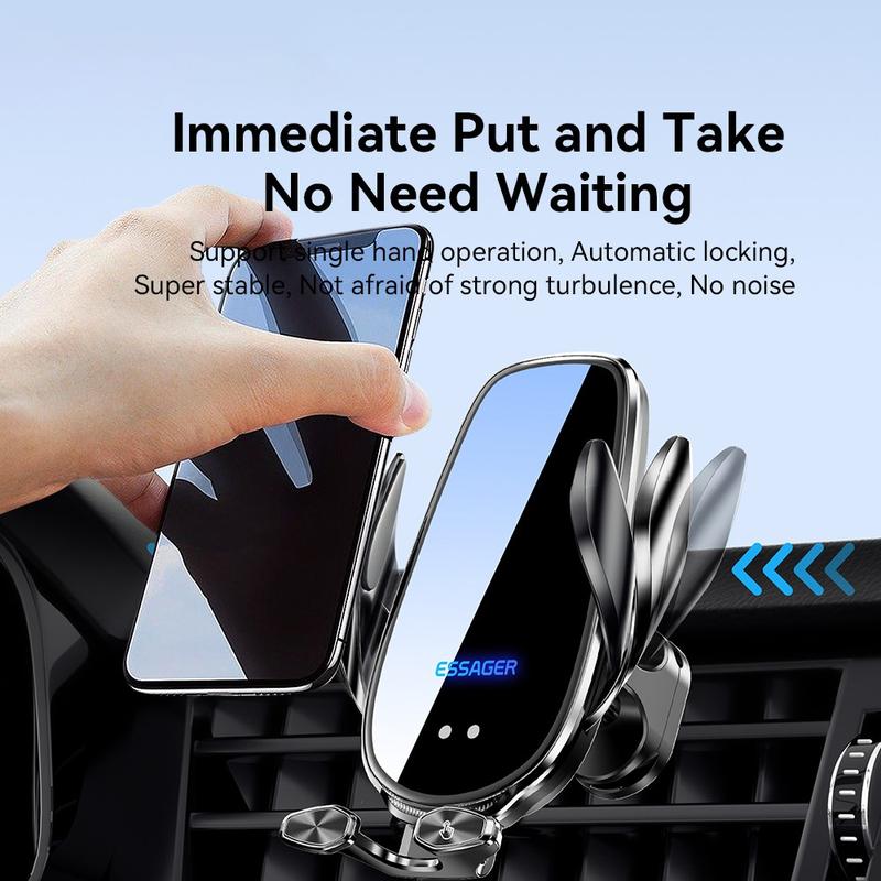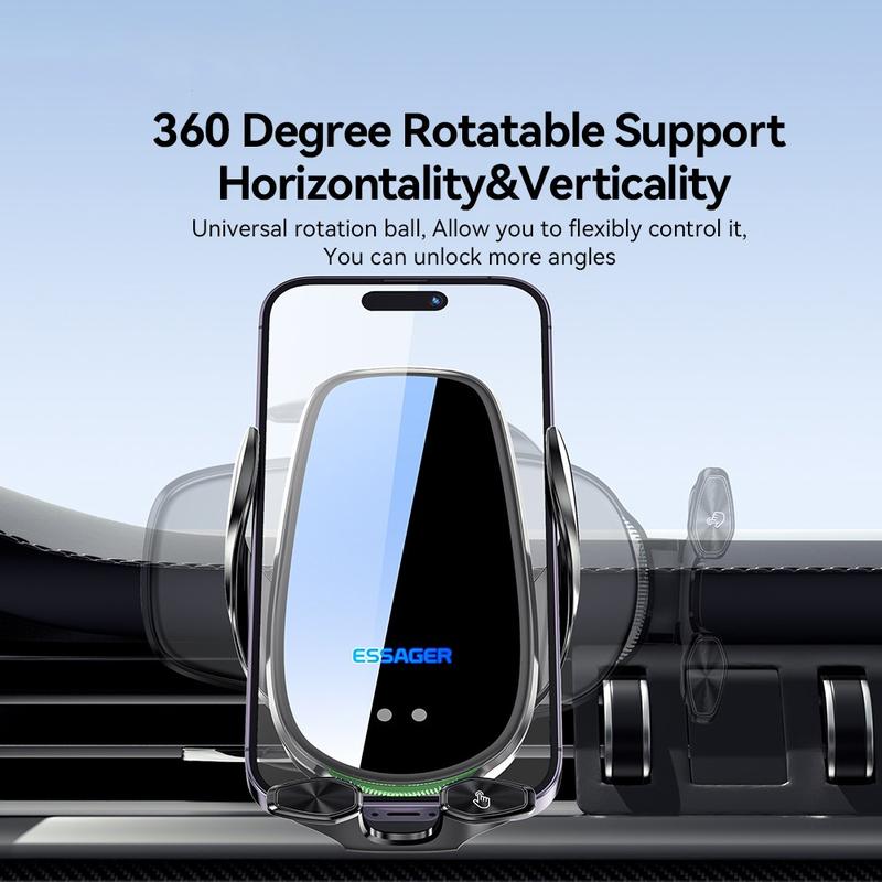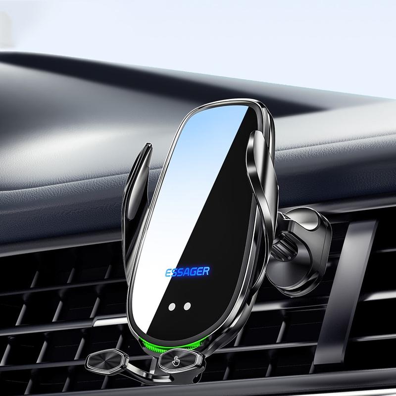 ESSAGER 15W Smart Car Draadloze Oplader Voertuig Telefoon Mount Charger Air Vent telefoonhouder met Ambient Light
