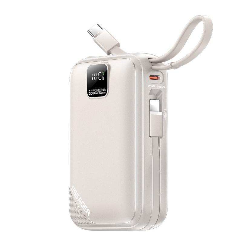 De ESSAGER PD 65W powerbank combineert snel opladen op laptopniveau, dubbele ingebouwde kabels, hoge capaciteit en slimme LED-bewaking, waardoor het de ultieme alles-in-één oplaadoplossing is voor op reis, op het werk en voor dagelijks gebruik.