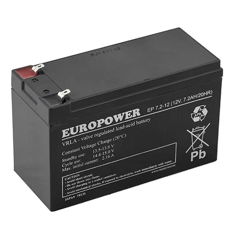Europower EP 7,2-12 AGM VRLA verzegelde oplaadbare accu met T2-aansluitingen – 12 V, 7,2 Ah