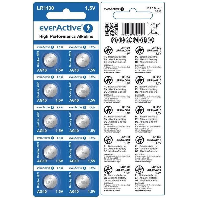 EverActive AG10 LR1130/LR54 Alkaline knoopcel batterijen - 10 stuks.