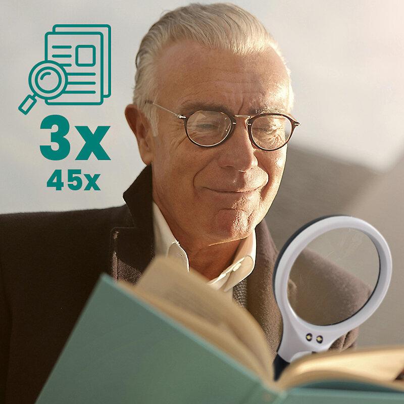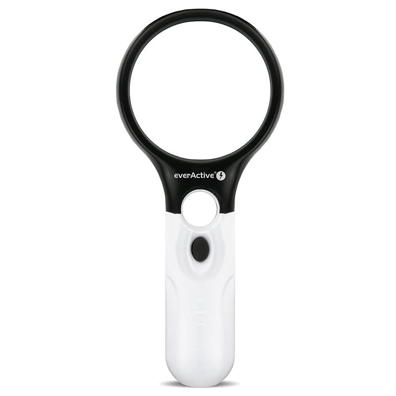 EverActive MG-01 vergrootglas met LED-achtergrondverlichting - 3x grote lens en 45x minilens, 3x AAA op batterijen
