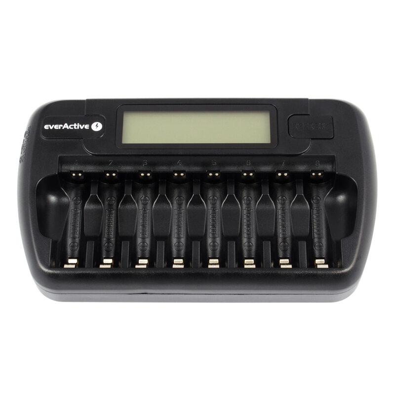EverActive NC-800 batterijlader voor 8x AAA/AA oplaadbare batterijen - met autolader, EU-stekker en voedingsadapter