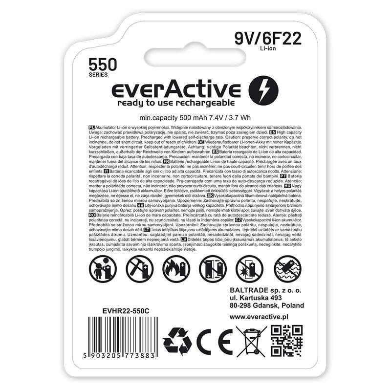 EverActive Professional+ Lithium USB-C 6F22/9V oplaadbare batterij - 550mAh - 1 st.
