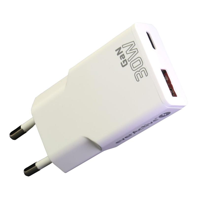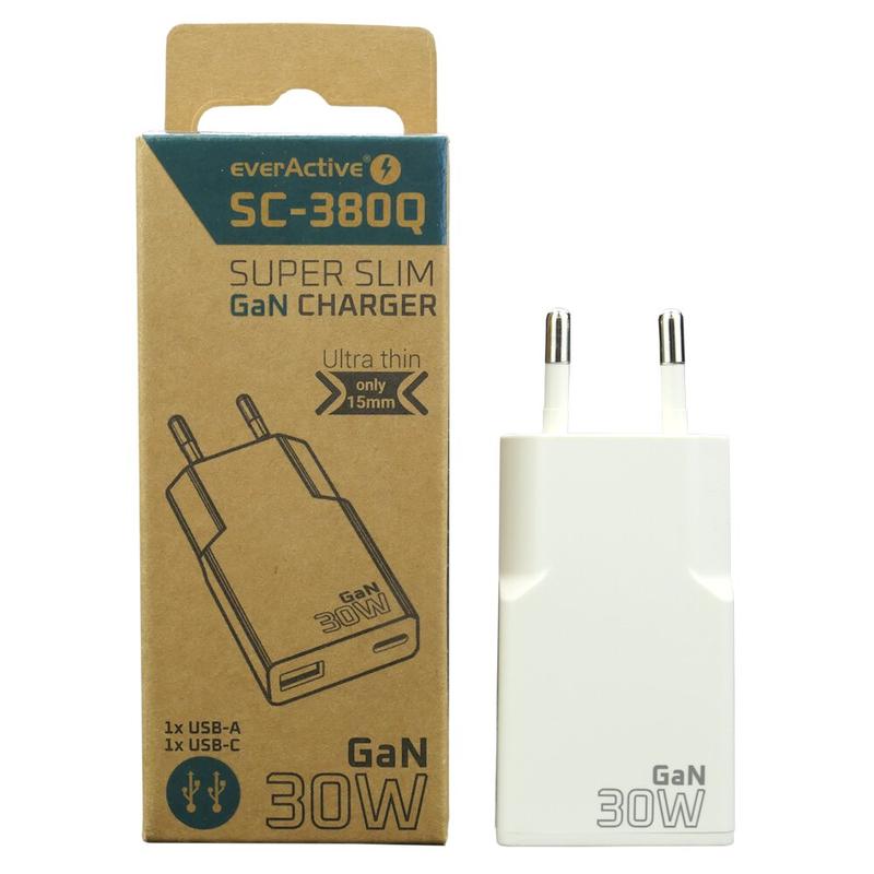 everActive SC-380Q GaN Super Slim 30W Wandoplader met USB QC3.0 & USB-C PD-poorten