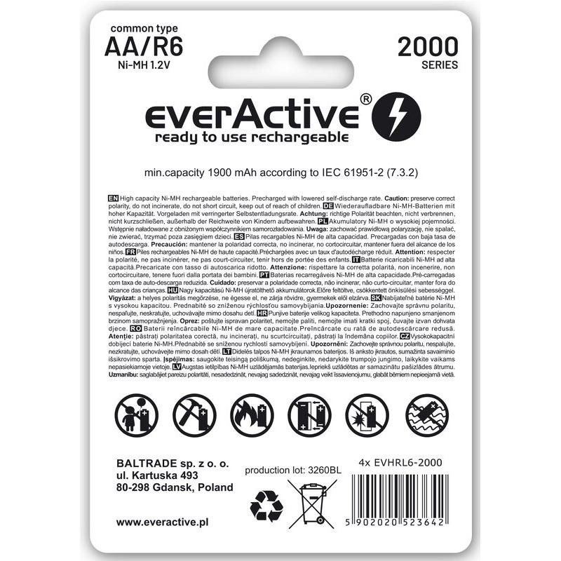 EverActive Silver Line EVHRL6-2000 Ni-MH R6/AA oplaadbare batterijen 2000mAh - 4 stuks.