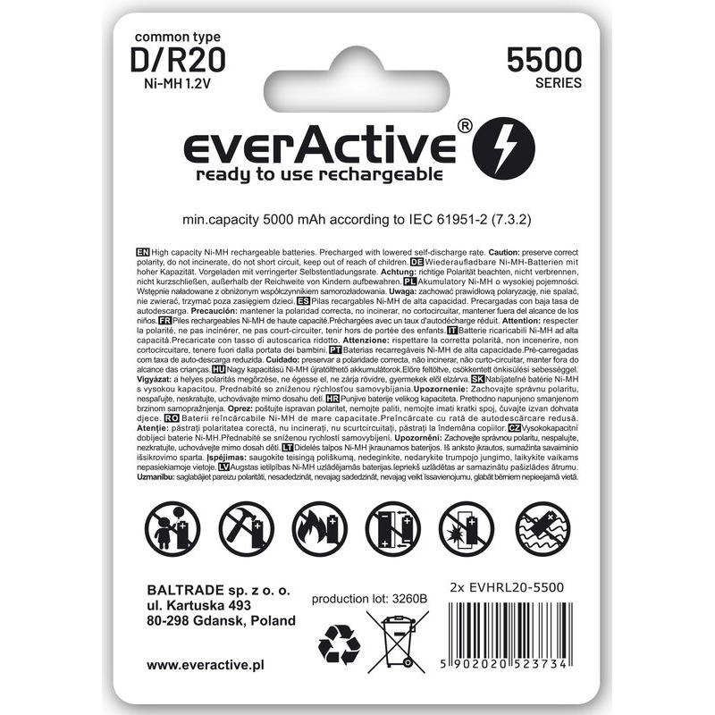 EverActive Silver Line EVHRL20-5500 Ni-MH R20/D oplaadbare batterijen 5500mAh - 2 stuks.