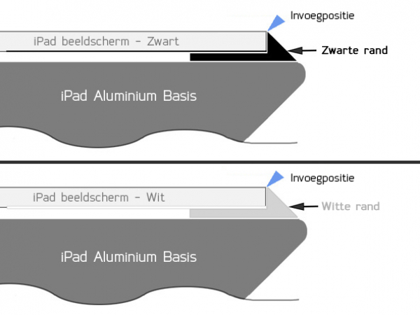 De digitizer kabel zit ongeveer 5 cm boven de onderkant van de Apple iPad. Stop het schuiven van het plectrum als u ongeveer 5.5 cm boven de onderkant.