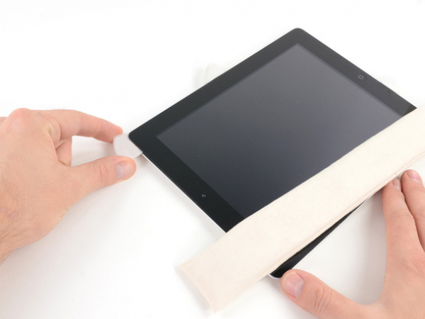 U zult de iOpener moeten verwarmen in de magnetron, en gebruik maken van een geïsoleerde tas die warmte zal overdragen naar de zelfklevende bandjes rond het scherm van de iPad 4 Wi-Fi.