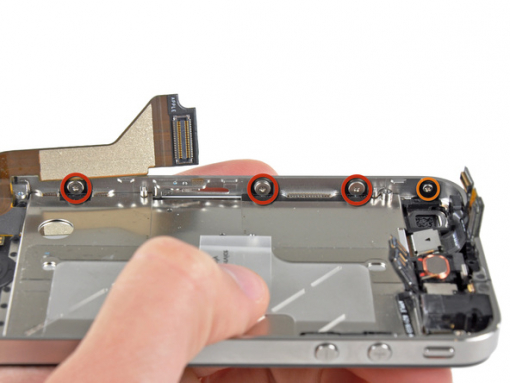 Trek de dock connector lintkabel zorgvuldig los van het logic bord en de onderste luidsprekerkast.