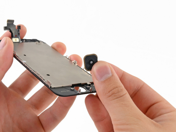 Gebruik een plastic openingstool om de home-knop omhoog van het scherm te wrikken.