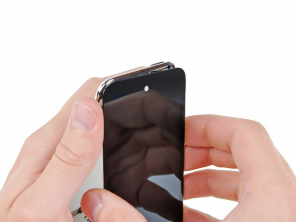 iPod Touch 4e generatie frontpaneel wordt door lijm aan de achterkant bevestigd. Het gebruik van een warmtepistool om de lijm zacht te maken is ten zeerste aanbevolen.