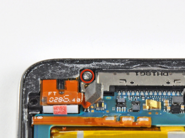 Verwijder de 2,6 mm Phillips schroef waarmee de hoofdtelefoonaansluiting aan de achterkant vast zit.