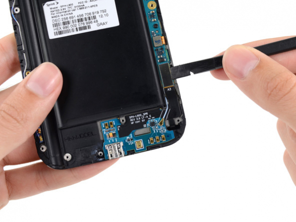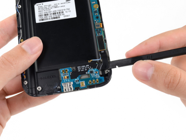Plaats een plastic opener, of uw vinger, in de uitsparing van het batterijvak en til de batterij omhoog.