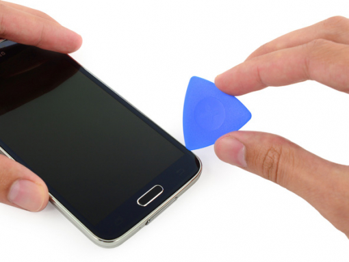 Je moet een plectrum draaien om het glas los te maken van de telefoon.