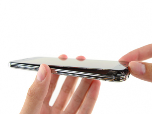 Er is een kleine hoeveelheid lijm boven de oortelefoon luidspreker waarmee de bovenkant van de telefoon vastgelijmd is.